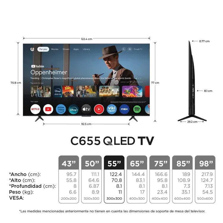 TV TCL 55" Pulgadas 139 cm 55 C655 Advanced 4K-UHD QLED Smart TV Google